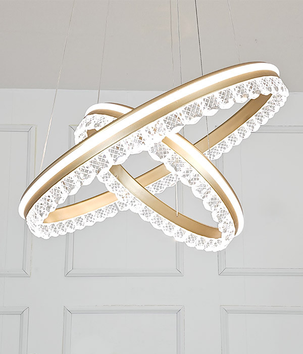 고급스럽고 원형 골드 프레임과 세련된 레이스 무늬 크리스탈